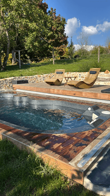 Alors, en plus des travaux ‘’techniques’’ qui sont peu visibles une fois réalisés (chemin remblayé, assainissement, peinture,…), voici ceux dont vous, hôtes de passage à La Barillerie, allez pouvoir profiter dès cet été comme la terrasse au bord d’un ‘’Bassin de nage et spa’’ ou dès l’année prochaine comme notre nouveau gîte insolite pour 2 personnes, ‘’La Cabane de Pêcheurs’’ avec son ponton au bord de notre étang... mais concernant ceux-ci, nous vous en dirons plus prochainement ;-))
